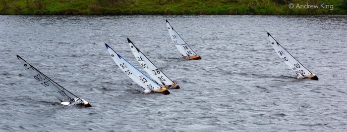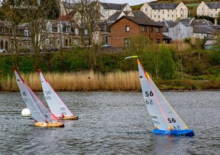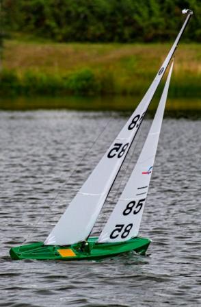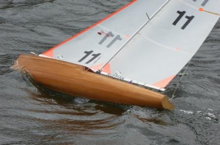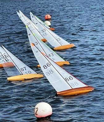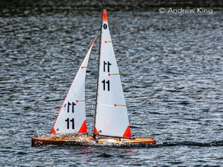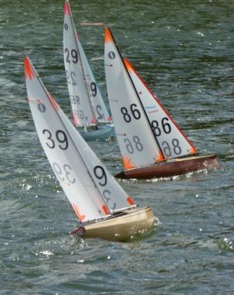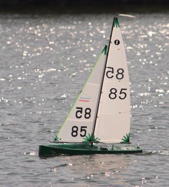 The International One Metre class of radio yachts offers a high level of performance.   The boat is 1m long and typically weighs about 4kg.  Hulls may be constructed in glassfibre or wood.   At Greenock there are quite a few wooden boats, a number of which have been designed and built by our veteran sailor Hugh Shields.   The class is widely raced throughout Scotland, the rest of UK and elsewhere in the world.   Greenock skippers have taken part in UK National, European and World Championships.
